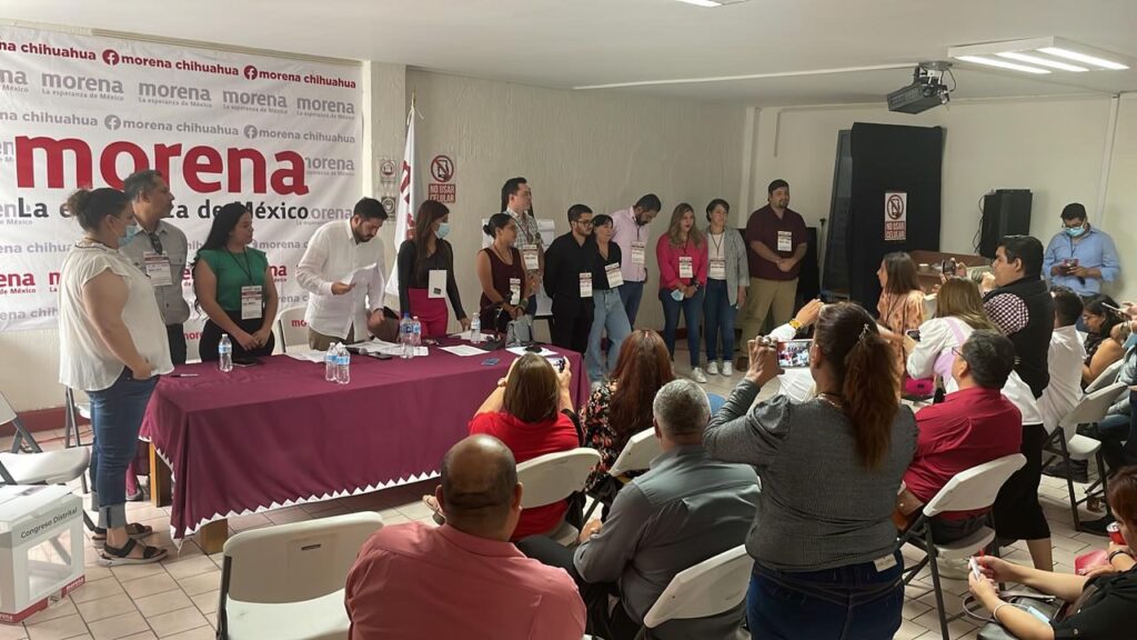 En el proceso electivo participaron los 90 integrantes del Consejo Estatal de Morena que fueron electos el pasado 6 de agosto en los nueve distritos electorales federales de Chihuahua. El cargo de Secretario General de Morena en Chihuahua quedó en la persona de Omar Holguín Franco, mientras que Ana Laura Contreras obtuvo la cartera de Finanzas, Valeria Cruz la de Mujeres, Javier Zubía la de Comunicación, Kevin Mares la Secretaria de Organización y Luisa Rey la Secretaria de Educación