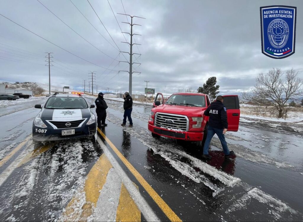 CHIHUAHUA, CHIH.- La Fiscalía de Distrito Zona Occidente, a través de personal de la Agencia Estatal de Investigación, participó la mañana de este viernes 10 de enero, en acciones de apoyo a autoridades de Vialidad y Protección Civil, ante la contingencia generada por la nieve.
