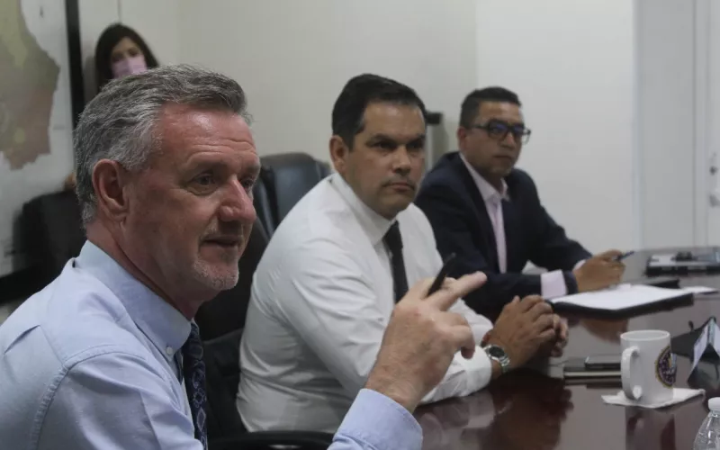 El Secretario de Seguridad Pública del Estado encabezó una reunión de trabajo con el Dr. Michel Tarko, presidente y CEO del JIBC y el Dr. Stuart Ruttan, Decano de la Escuela de Justicia y Seguridad Criminal del JIBC y el secretario particular del titular de la corporación.
