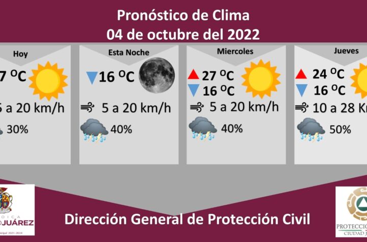 POR REDACCION CD. JUAREZ, CHIH.- La Dirección General de Protección Civil, con base en informes del Servicio Meteorológico Nacional, pronostica...