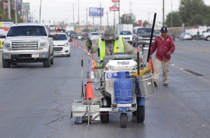 POR REDACCION CD. JUAREZ, CHIH.- La Coordinación General de Seguridad Vial continúa con la aplicación de pintura para la división...