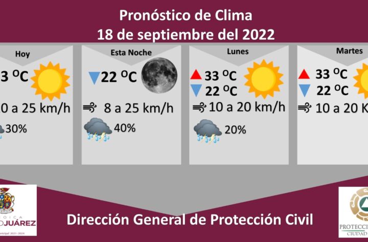 POR REDACCION CD. JUAREZ, CHIH.-La Dirección General de Protección Civil, con base en informes del Servicio Meteorológico Nacional, pronostica un...