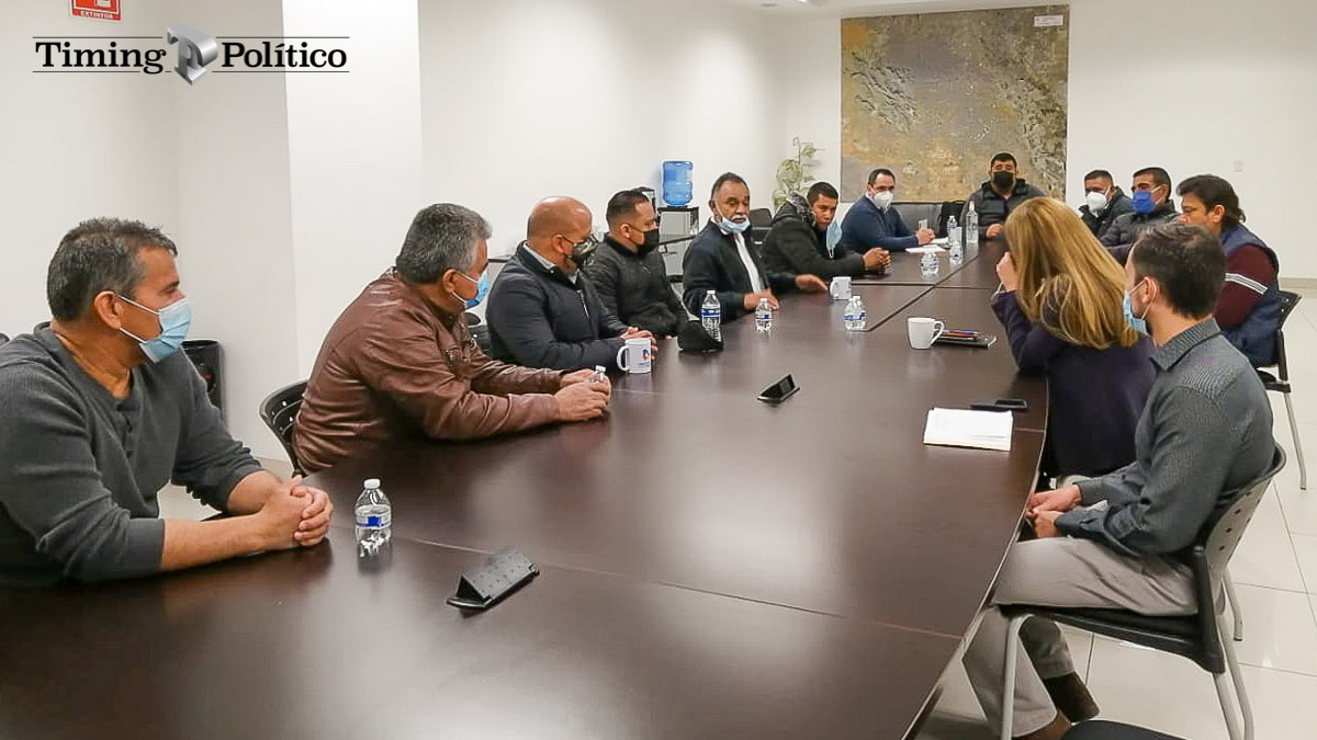 POR: REDACCION. CD. JUAREZ, CHIH.-La representante del Gobernador en Ciudad Juárez, Alejandra de la Vega, y el grupo de transportistas...