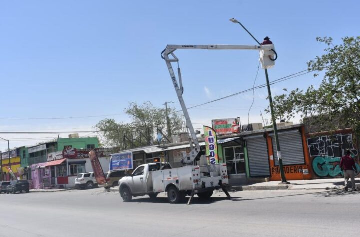 POR REDACCION CD. JUAREZ, CHIH.- Personal de la Dirección de Alumbrado Público trabaja en la infraestructura del sistema de iluminación...