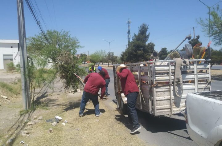 POR REDACCION CD. JUAREZ, CHIH.- Personal de la Dirección de Limpia trabaja en un operativo de limpieza en la avenida...