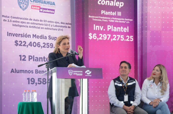 POR REDACCION CD. JUAREZ, CHIH.- La gobernadora del Estado de Chihuahua, Maru Campos, hizo entrega de aulas y un laboratorio...