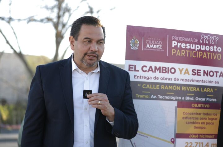 POR REDACCION CD. JUAREZ, CHIH.- El Presidente Municipal, Cruz Pérez Cuéllar, llevó a cabo la entrega de obras de repavimentación...
