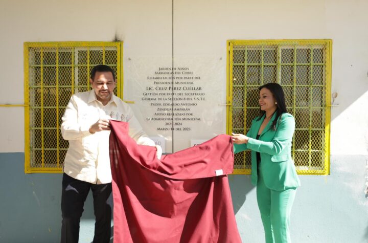 POR REDACCION CD. JUAREZ, CHIH.- El Presidente Municipal, Cruz Pérez Cuéllar, entregó este día varias obras al Jardín de Niños...