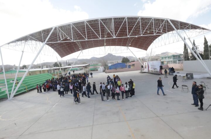 POR REDACCION CD. JUAREZ. CHIH.- El Presidente Municipal, Cruz Pérez Cuéllar, entregó un domo para actividades deportivas y culturales a...