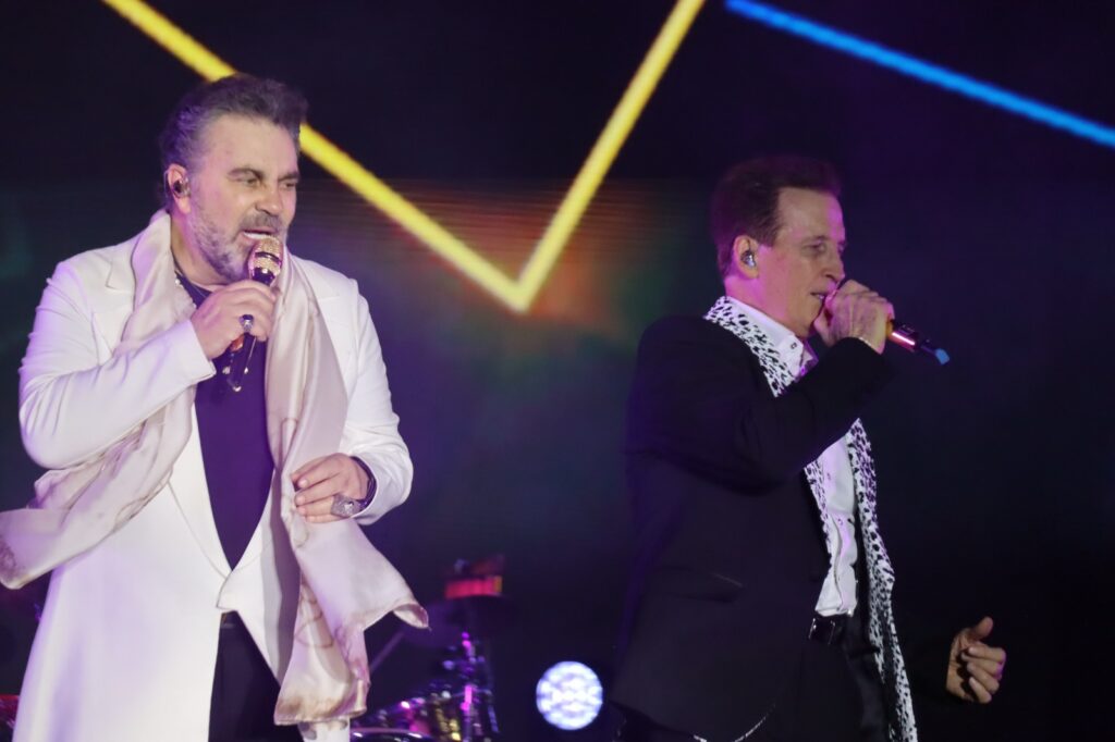 Para cerrar la celebración subieron al escenario Emmanuel y Mijares, quienes arrancaron su participación con un popurrí de sus emblemáticas canciones “Bella señora” y “Bella”.