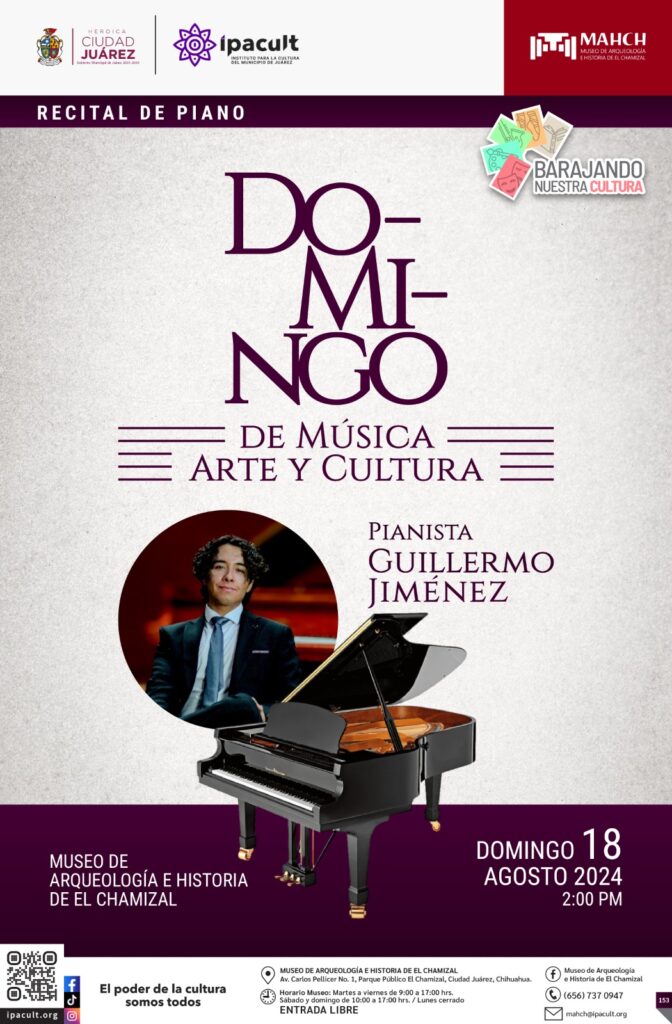 CD. JUAREZ, CHIH.- El Instituto para la Cultura del Municipio de Juárez (IPACULT) invita a la ciudadanía al evento “Do-Mi-ngo de música, arte y cultura”, que se llevará a cabo este próximo 18 de agosto en el Museo de Arqueología e Historia de El Chamizal (MAHCH).