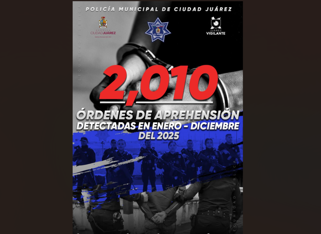 CD. JUAREZ, CHIH.-La Secretaría de Seguridad Pública Municipal informa sobre los resultados relevantes durante el año 2025, obtenidos en cuanto a detección de mandamientos judiciales vigentes a través de las acciones y estrategias para la prevención del delito.