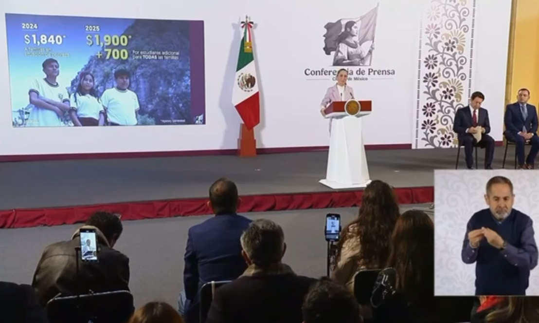 »Pasamos de un millón 100 a 5.6 millones de beneficiarios en el 2025, la beca que daba, o que se da hasta ahora, la Benito Juárez, solamente en preparatoria es por estudiante. En el caso de las Benito Juárez para educación básica, preescolar, primaria, y secundaria, es por familia. Entonces se dan mil 840 pesos a la familia, independiente si tiene un hijo, dos hijos, tres hijos, cuatro hijos. Entonces, ¿qué vamos a hacer? Dar un adicional a la familia por cada hijo que tenga adicional. Entonces son mil 900 de base a la familia, si tienen dos hijos, pues será mil 900 más 700; si tienen tres hijos, mil 900, más mil 400; ese es el esquema de la beca Rita Cetina», explicó.