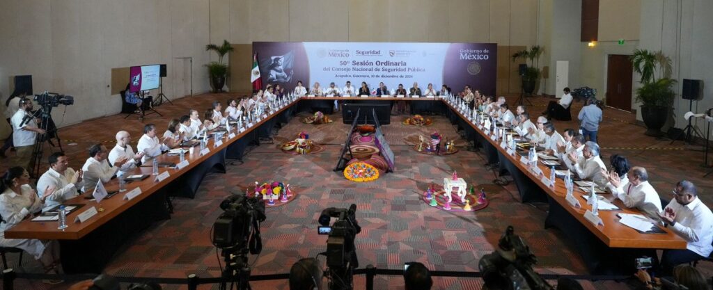 ACAPULCO, GUERRERO.-Al encabezar la 50° sesión ordinaria del Consejo Nacional de Seguridad Pública, la Presidenta, Claudia Sheinbaum Pardo, destacó que juntos y juntas: el Gabinete de Seguridad, así como gobernadores y gobernadoras de todo el país, lograrán construir paz y seguridad en México.