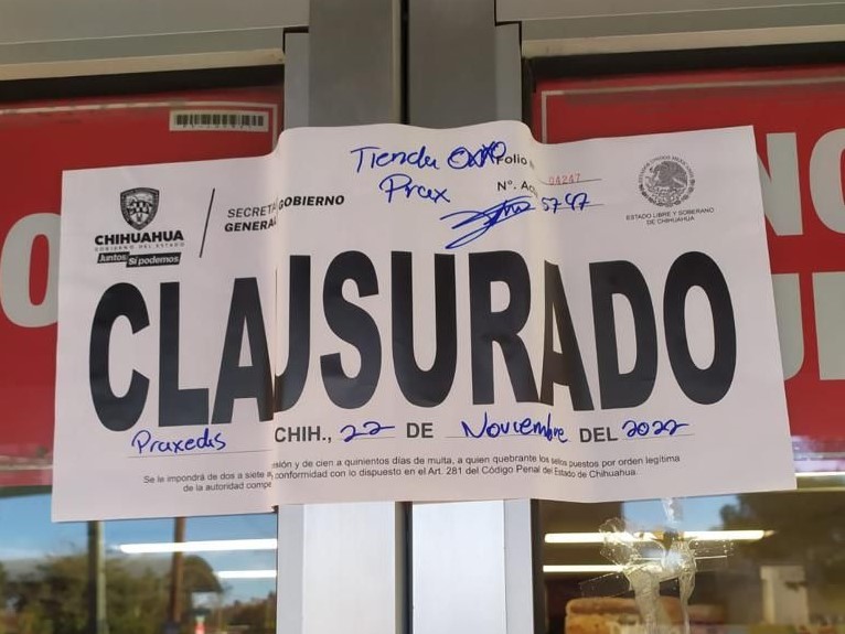 “Se registraron 2 clausuras en el municipio de Praxedis G. Guerrero, una en Guadalupe y cinco en Juárez, cinco de las cuales fueron por no presentar la documentación correspondiente, dos por registrarse hechos violentos y venta de botellas de alcohol alteradas y/o adulteradas”, dio a conocer el titular de la dependencia, Alejandro Jiménez.