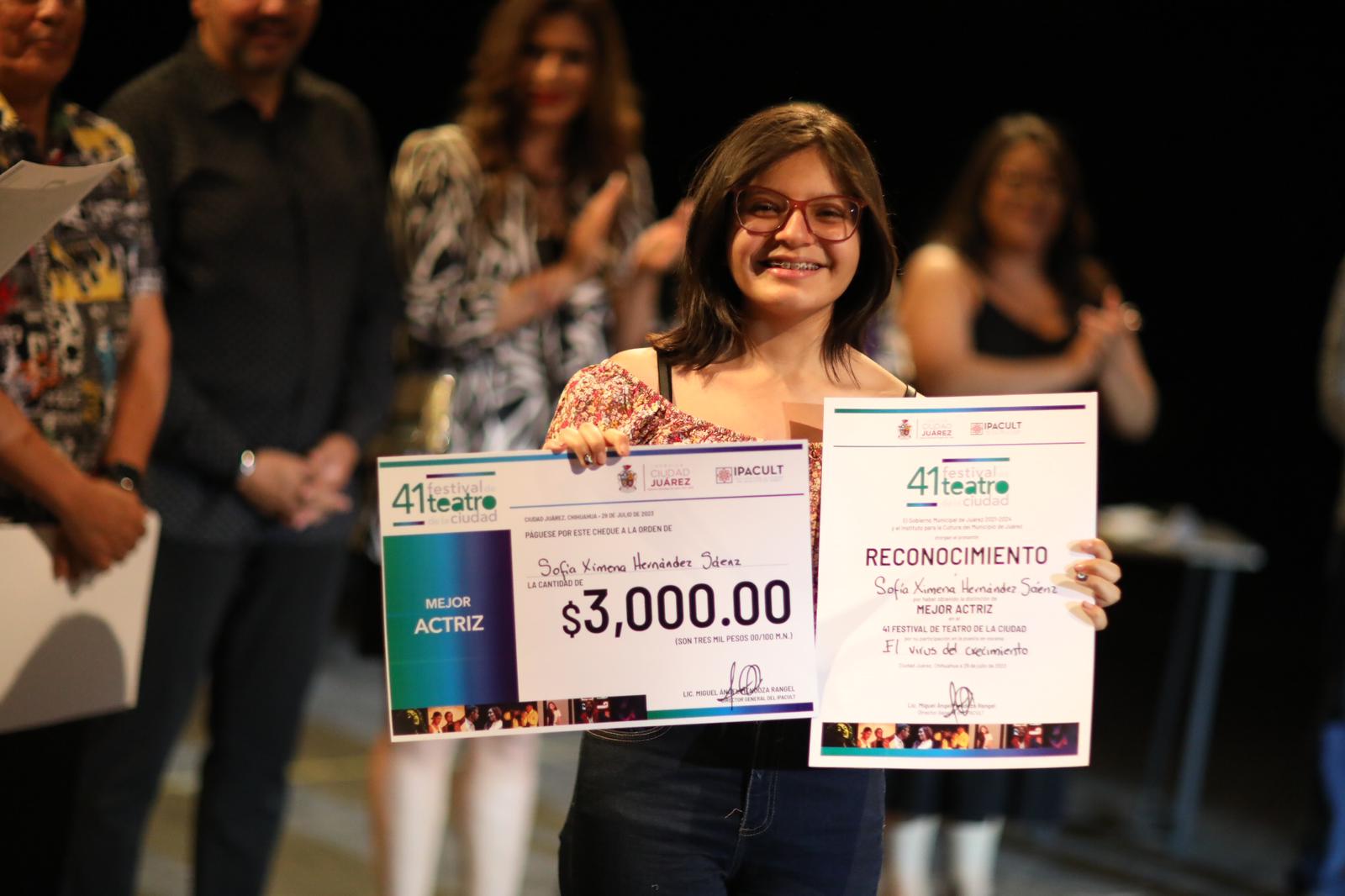 CD. JUAREZ, CHIH.- En el marco de la clausura del Festival de Teatro de la Ciudad, edición XLI, el Presidente Municipal, Cruz Pérez Cuéllar, invitó a los actores y directores a que se haga teatro de calidad, ya que este quehacer artístico es una de las mejores expresiones culturales.