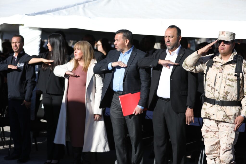 Así mismo estuvieron el secretario del Ayuntamiento, Héctor Rafael Ortiz Orpinel; la directora de Educación Municipal, Martha Aracely González Holguín, el regidor Jorge Marcial Bueno, la síndica Municipal, María Esther Mejía Cruz y el capitán de Caballería Edgar García, del Noveno Regimiento de Caballería Motorizado.