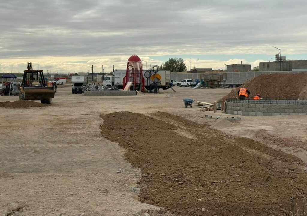 CD. JUAREZ, CHIH.- La Dirección General de Obras Públicas continúa trabajando en la construcción del Parque Urbano Suroriente ubicado en la avenida Miguel de la Madrid y la calle Ramón Rayón, trabajando actualmente en la colocación de juegos, pero ya se lleva un avance del 65 por ciento en la obra.