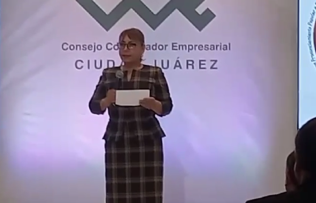 CD. JUAREZ, CHIH.- Con la finalidad de compartir propuestas insignes ante los empresarios integrantes del Consejo Coordinador Empresarial, este día, la candidata a la Presidencia Municipal, Esther Mejía Cruz, se comprometió a fortalecer el vínculo entre el sector empresarial y el gobierno municipal en un “Encuentro con candidatos”, realizado en el Centro de Eventos Cibeles.