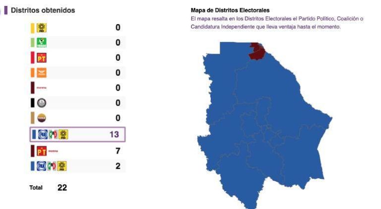 De acuerdo a resultado del PREP el Frente lleva ventaja en 15 distritos locales tomando en cuenta el 10% del PREP