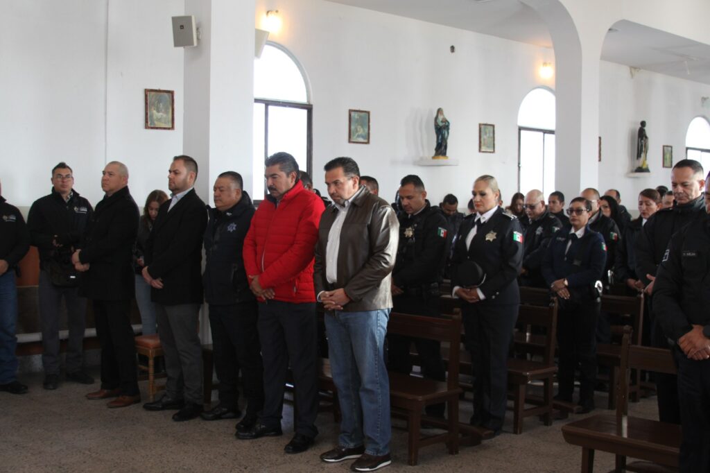 CD. JUAREZ, CHIH.-El Presidente Municipal, Cruz Pérez Cuellar, acompañado por el secretario de Seguridad Pública Municipal, César Omar Muñoz Morales y el coordinador General de Seguridad Vial, César Alberto Tapia Martínez asistieron este día a la misa para conmemorar del Día del Policía Vial.