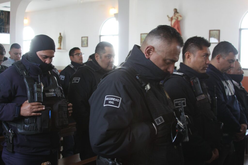 La tradicional celebración religiosa se llevó a cabo a las 08:00 horas en la Capilla San Sebastián Mártir, situada en la avenida Tecnológico casi esquina con la calle Pedro Meneses Hoyos, en donde el sacerdote Francisco García recordó a los agentes que han perdido la vida en funciones y oró por el bienestar de los policías viales que continúan activos en las filas de esta dependencia.