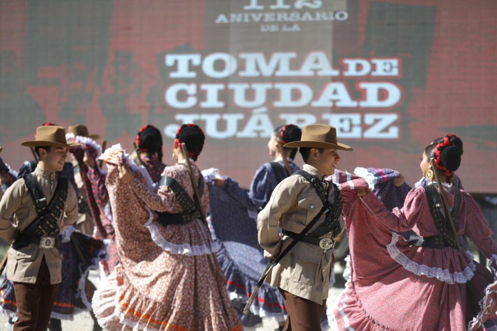 Con actores y bailarines del Centro Municipal de las Artes (CMA), se representaron los acontecimientos ocurridos en esta frontera en 1911, iniciando con la llegada de Francisco I. Madero, luego de su derrota en Casas Grandes, refugiándose en la Casa Gris que ahora es la Casa de Adobe.