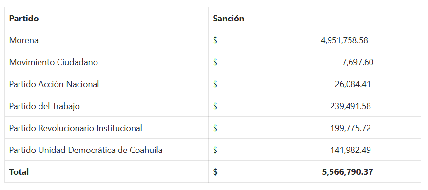Derivado de la fiscalización de la etapa de precampaña del PEL 2022-2023 en el estado de Coahuila, el pleno aprobó las siguientes sanciones: