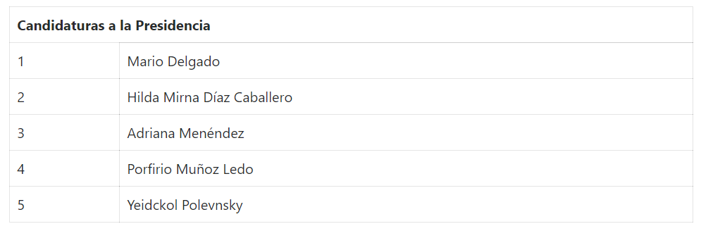Como resultado de la encuesta de reconocimiento, pasan a la siguiente fase 5 candidaturas a la Presidencia de Morena
