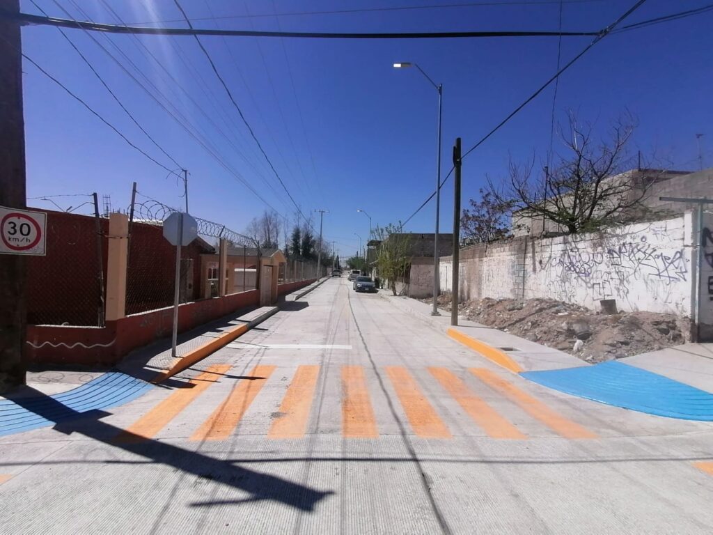 Por ello, se llevó a cabo la instalación de infraestructura para alumbrado público, la colocación de tubería PVC para tomas y descargas de agua potable y drenaje, construcción de banquetas, señalización horizontal y vertical.
