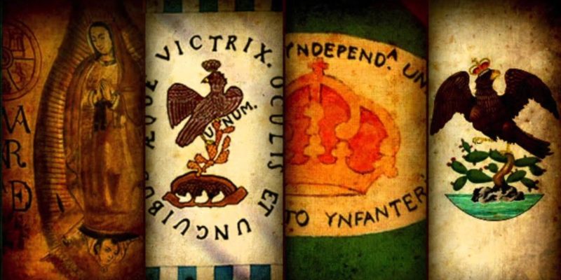 En la declaración del Plan de Iguala, Iturbide llevaba la bandera trigarante (verde, blanca y rojo), en franjas diagonales. Los colores de la bandera garantizaban algunos derechos, el blanco representaba la religión católica, el verde la Independencia de México ante España y el rojo la igualdad y la unión de los mexicanos con los españoles y las castas.