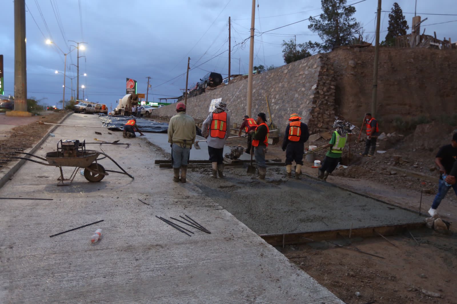 CD. JUAREZ, CHIH.- Como una forma de prevenir la aparición de baches en una de las zonas más susceptibles a inundación en la avenida División del Norte, la Dirección General de Obras Públicas realiza trabajos nocturnos para construir losas de concreto hidráulico en la parte más baja de la vialidad.
