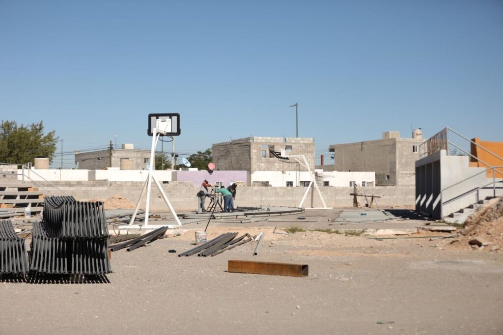 Daniel González García, titular de la dependencia, comentó que el personal de la misma ya terminó con la cimentación que sostendrá la base del domo, por lo que actualmente están trabajando en habilitar la estructura, la cual dará sombra a una cancha de usos múltiples y las gradas de la escuela.