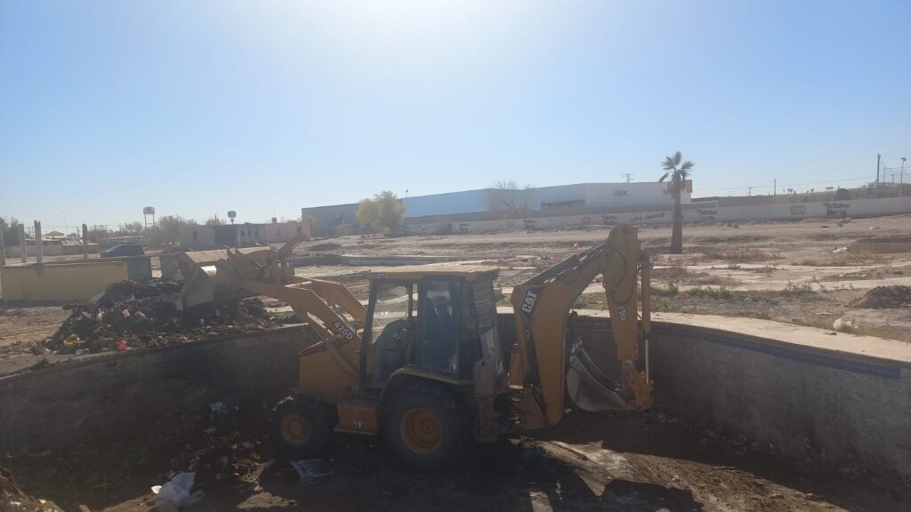CD. JUAREZ, CHIH.- Personal de la Dirección de Limpia continúa trabajando en la limpieza de predios baldíos en diferentes puntos de la ciudad; este jueves de manera simultánea atienden un terreno ubicado en la colonia Sierra Vista y uno más en el fraccionamiento Riberas del Bravo, etapa cinco.