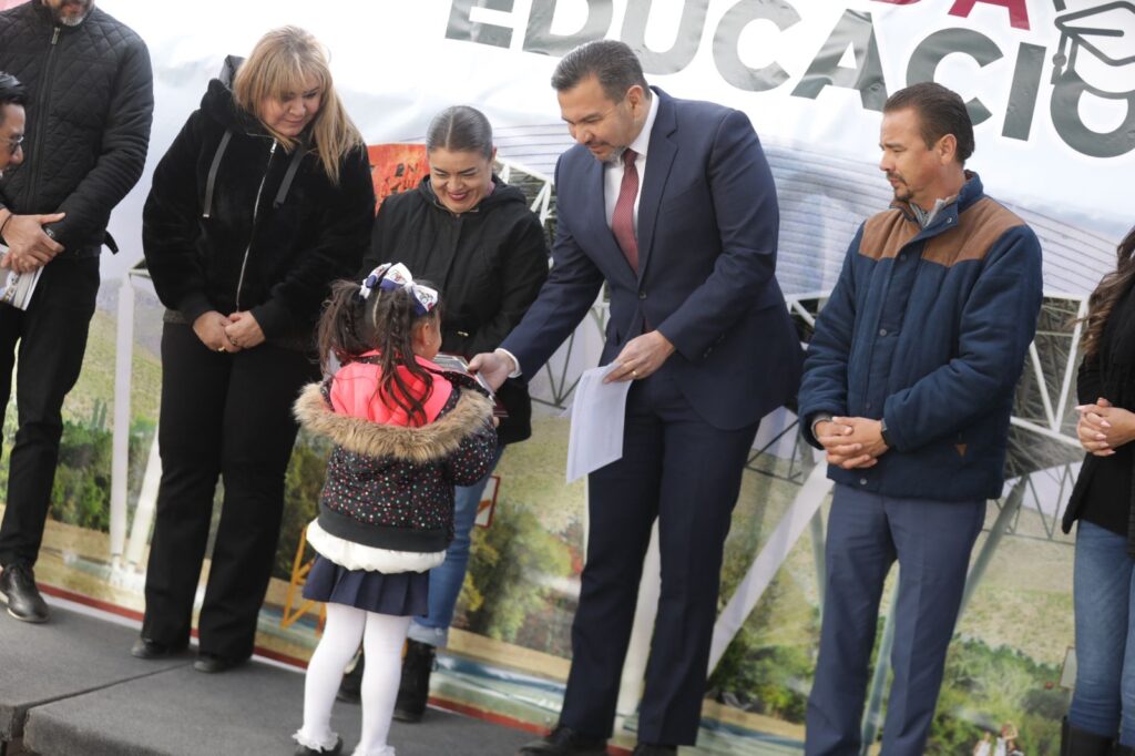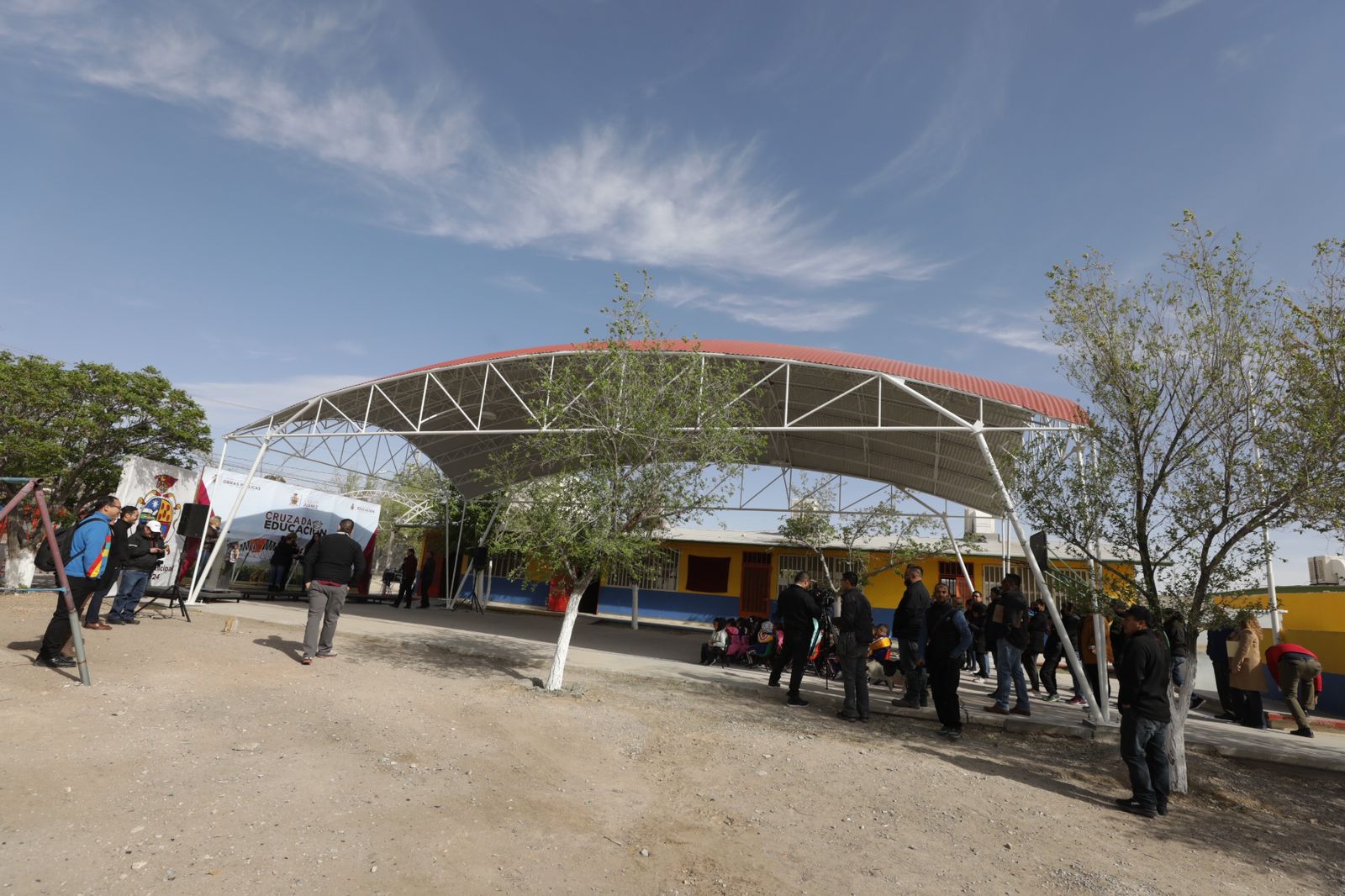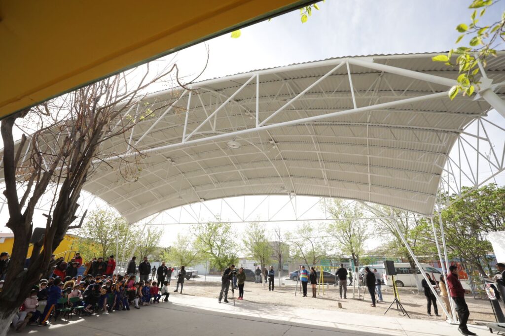 La primera de las entregas se llevó a cabo en la Escuela Primaria Juana I de Asbaje, donde fue construido un domo con una inversión de un millón 524 mil pesos, mientras que la estructura del jardín de niños tuvo una inversión de 561 mil pesos.