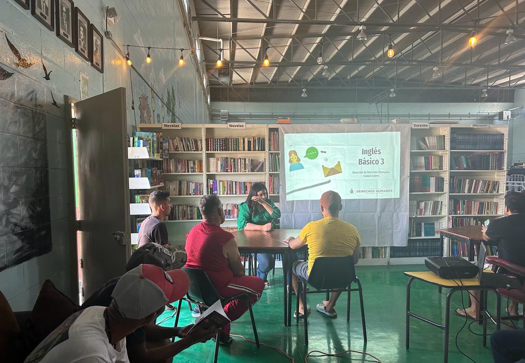 CD. JUAREZ, CHIH.- La Dirección de Derechos Humanos persiste en su compromiso de apoyar a las personas en situación de movilidad que se encuentran alojadas en el albergue Enrique “Kiki” Romero al ofrecer clases de inglés básico, que tienen como objetivo facilitar el proceso migratorio de aquellos que buscan un futuro en los Estados Unidos.