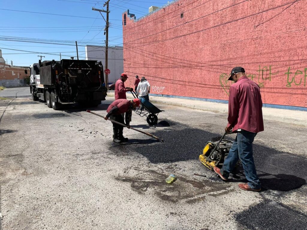 CD. JUAREZ, CHIH.- La Dirección General de Obras Públicas mantiene los trabajos de mantenimiento de vialidades con acciones de bacheo en diversos sectores de la ciudad, como parte del esfuerzo por mantener las calles en óptimas condiciones, asegurando la comodidad y seguridad de los ciudadanos.