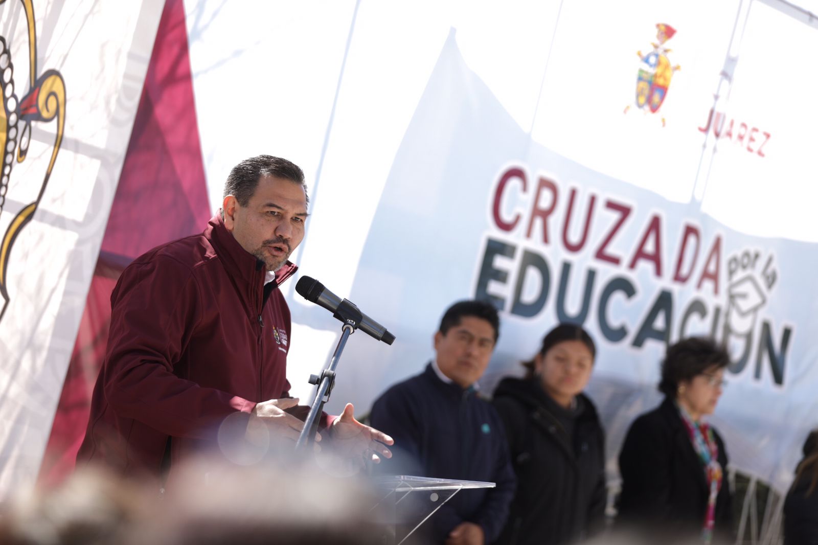CD. JUAREZ, CHIH.- El Presidente Municipal, Cruz Pérez Cuéllar, destacó que su administración está haciendo mucha obra pública en distintas zonas de la ciudad y reiteró que se continuará trabajando en proyectos que beneficien directamente a la comunidad escolar.
