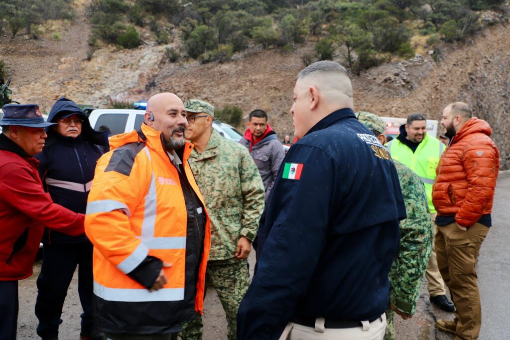 El encuentro se desarrolló a la altura del kilómetro 79 de la carretera Janos–Agua Prieta, con la presencia de los coordinadores estatales de Protección Civil de ambas entidades, Luis Corral Torresdey y Daniel Abraham Gámez.