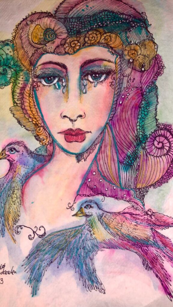 Mi trabajo es como si yo escribiera mi historia sobre cada trazo, siempre se ven imágenes femeninas son como una metáfora de la madre naturaleza, gestadora, creadora y dadora de vida y donde giran alrededor seres vivientes.