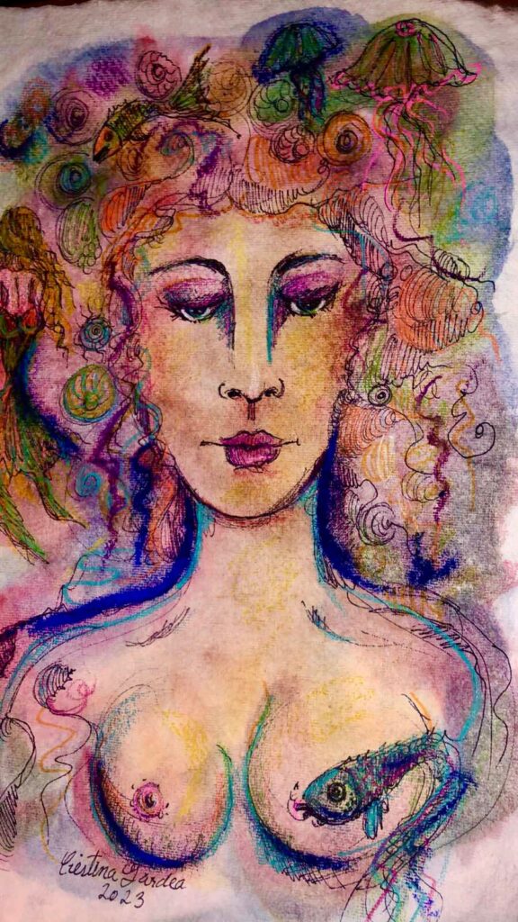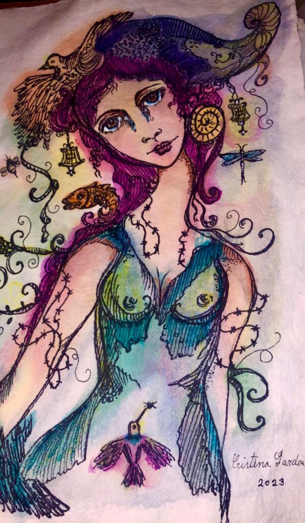 Cristina es una pintora mítica fantasiosa, en donde se encuentran sirenas y peces en sus retratos, nos explica sobre qué es para ella…