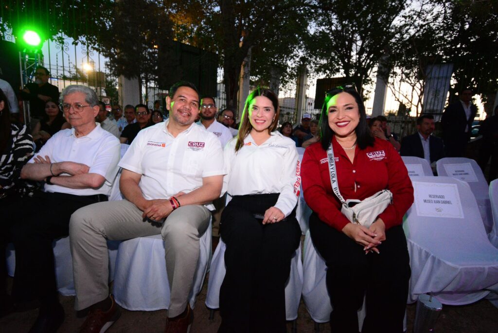 CD. JUAREZ, CHIH- El candidato a la alcaldía por la coalición “Sigamos Haciendo Historia en Chihuahua”, Cruz Pérez Cuéllar, acompañado de su esposa Rubí Enríquez, asistió al lanzamiento de la aplicación móvil creada por la Familia Aguilera y el Museo de Juan Gabriel.