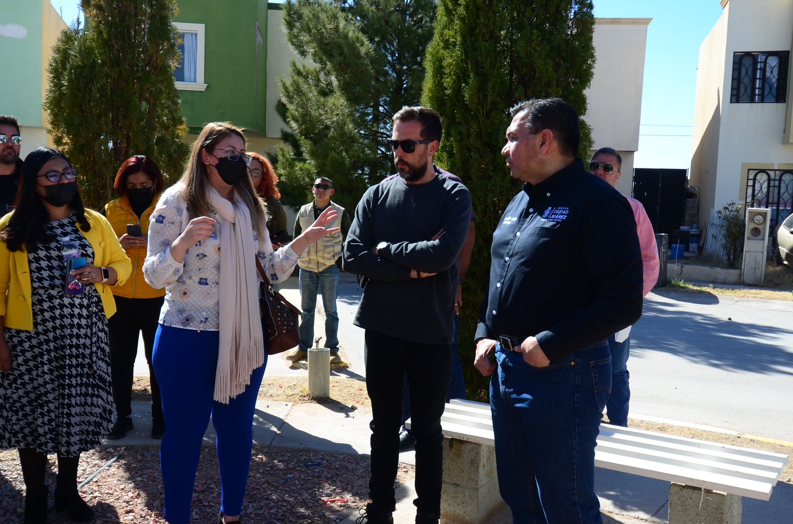 CD. JUAREZ, CHIH.- El Presidente Municipal Cruz Pérez Cuéllar visitó a los vecinos del fraccionamiento Terranova Sur para escuchar la problemática de esa zona ubicada al sur de la ciudad en cuanto a seguridad, alumbrado y pavimentación que se comprometió a atender.