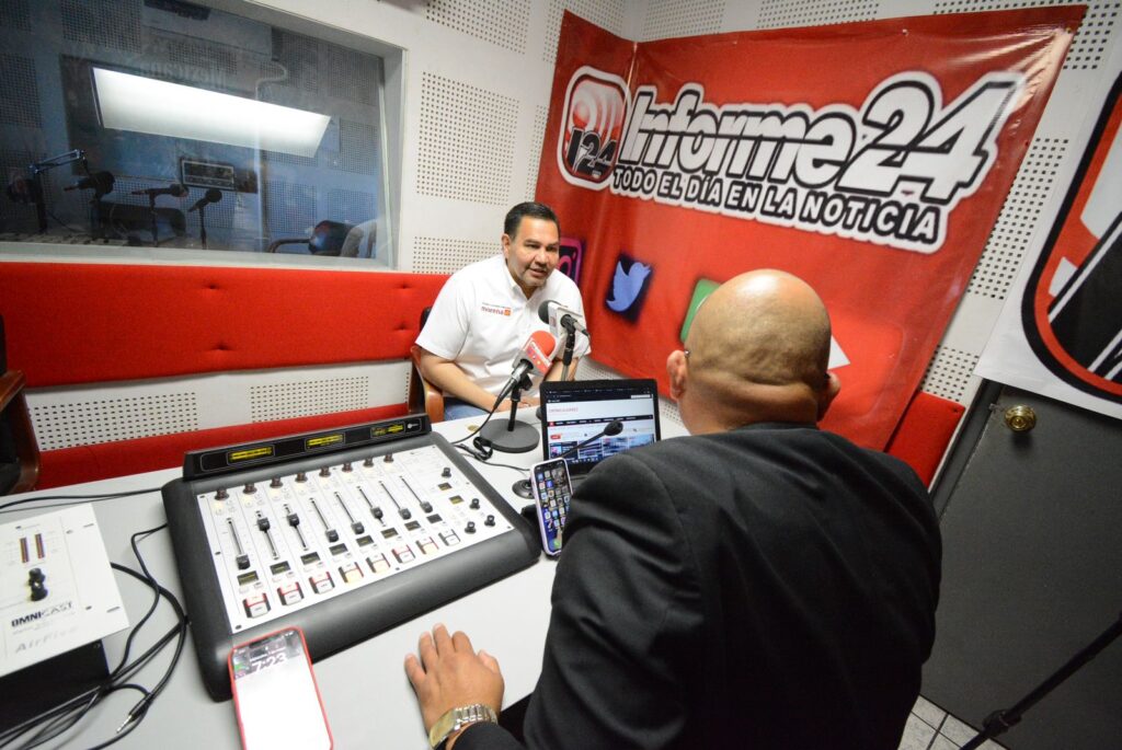 Esta mañana durante su intervención en varias estaciones de radio locales, como La Zeta 103.5 FM, La J Mexicana 970 AM y Calibre 800 por la 1240 AM, Pérez Cuéllar destacó su historial de logros, incluyendo récords en pavimentación, apoyo a escuelas, y mejoras en servicios públicos, entre otros.