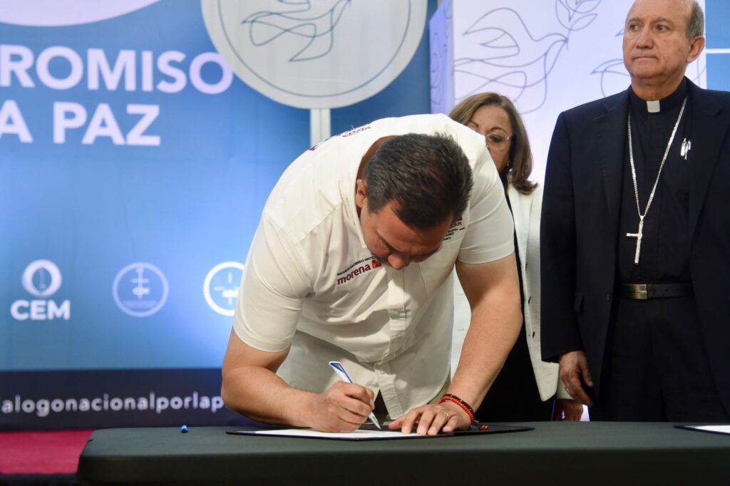 En el evento, Pérez Cuéllar firmó un documento de compromiso por la paz presentado a todos los candidatos de distintos partidos políticos.