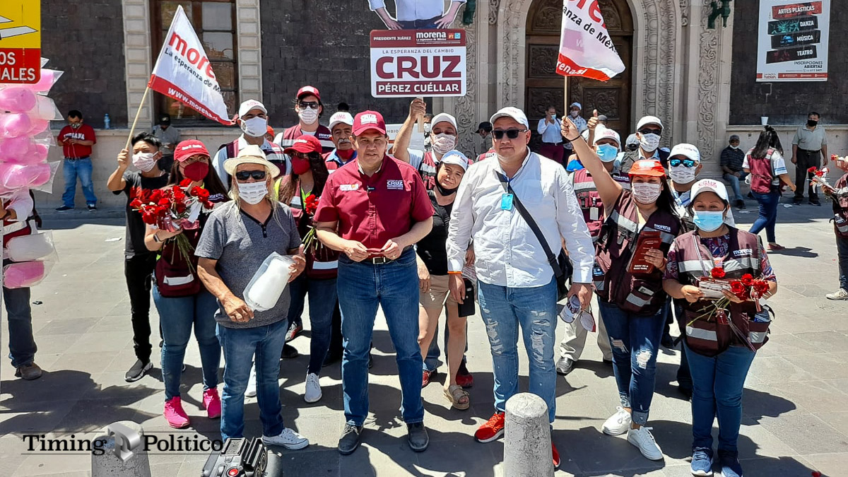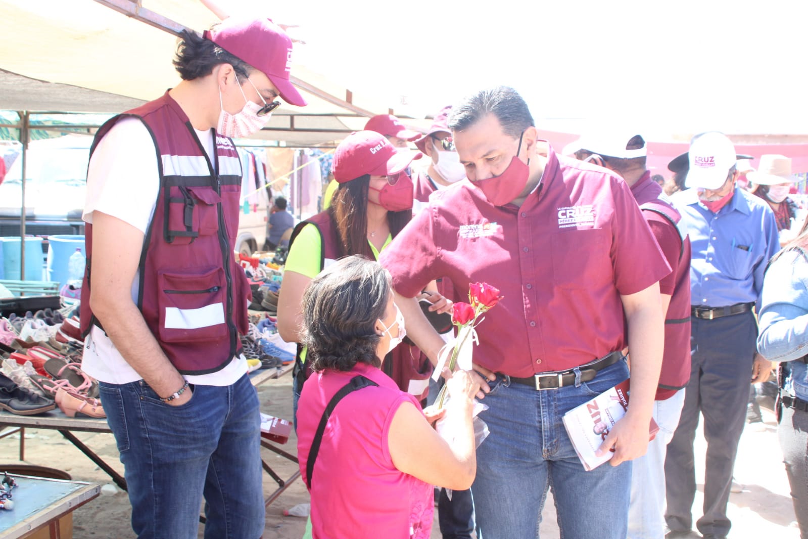 Los niños recibieron el algodón, las madres de familia una rosa, y en general los transeúntes recibieron el saludo y las propuestas de gobierno del Cruz Pérez Cuéllar que fue recibido con total aceptación entre los comerciantes y las personas que paseaban por el centro.