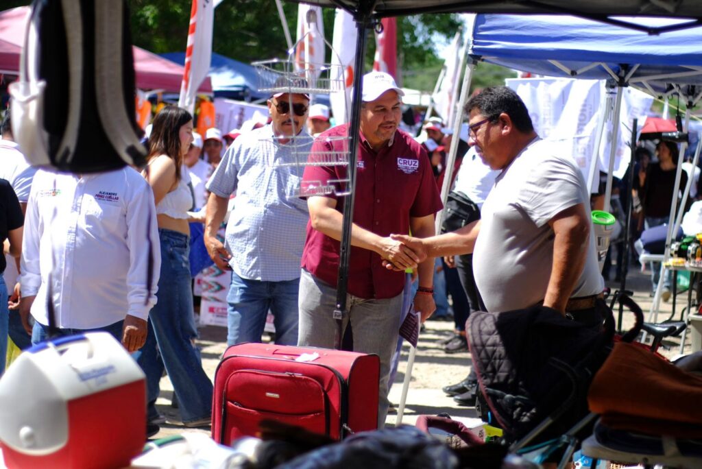 Durante su recorrido, Pérez Cuéllar, abanderado de Morena y Partido del Trabajo, fue recibido con alegría y gritos como “Vamos a Ganar” y “Arriba Cruz”.