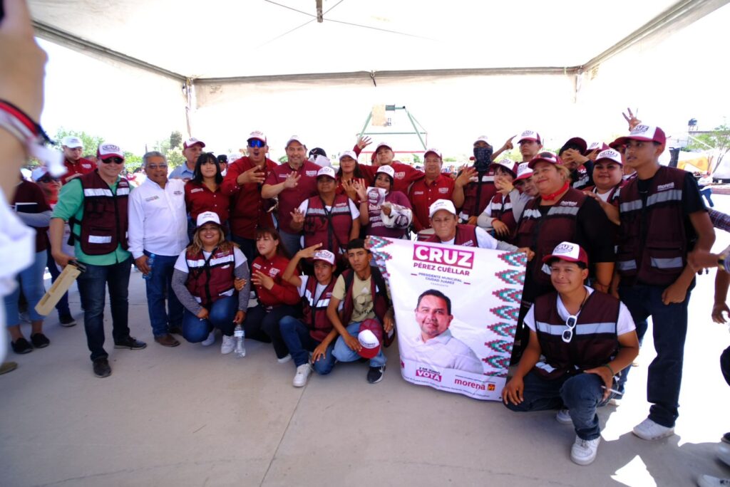 Durante su recorrido, Pérez Cuéllar, abanderado de Morena y Partido del Trabajo, fue recibido con alegría y gritos como “Vamos a Ganar” y “Arriba Cruz”.