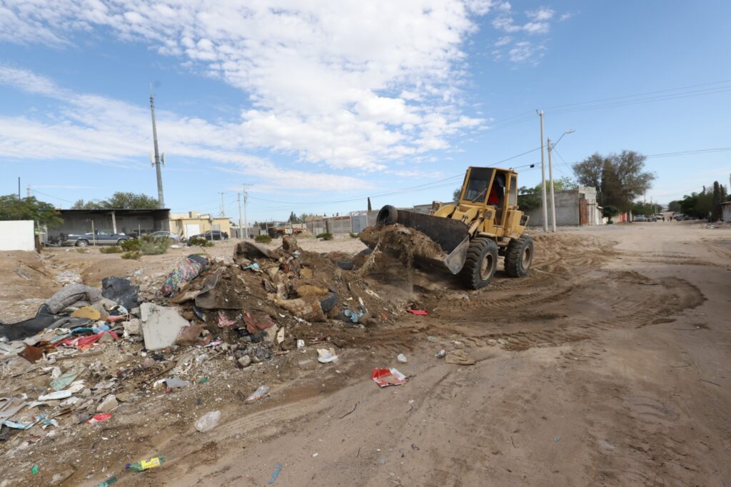 CD. JUAREZ, CHIH.- En el marco de la Cruzada por Juárez que se efectuará mañana sábado, las cuadrillas de las direcciones de Limpia, Parques y Jardines y Alumbrado Público realizaron labores de mantenimiento integral en la colonia Águilas de Zaragoza, con el objetivo de mantener espacios públicos limpios, seguros y bien iluminados.