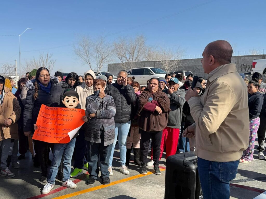 CD. JUAREZ, CHIH.– El diputado Cuauhtémoc Estrada Sotelo dio a conocer la inauguración de un nuevo parque, ubicado en la calle Ejido El Porvenir, de la colonia La Cañada, perteneciente al distrito VIII de Ciudad Juárez el cual representa, que se organizó como un proyecto de presupuesto participativo desde el 2022 y que ahora es un área de esparcimiento para las y los vecinos del lugar.